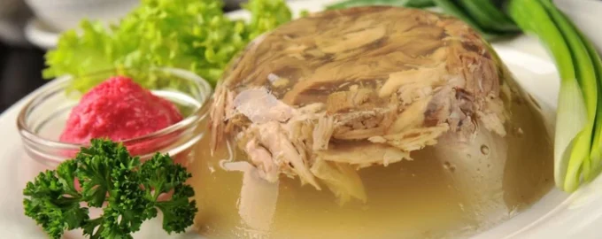 - Ogony lub podudzia wołowe dla bogatego smaku. Jeśli chcesz, aby twoje cholodety miały głębszy smak i bogaty kolor, dodaj golonkę lub ogon wołowy. Mięso to gotuje się dłużej, ale daje gęsty smak, szczególnie ceniony w klasycznej kuchni ukraińskiej. Kucharze zalecają mieszanie wieprzowiny i wołowiny w stosunku 2:1, wtedy danie okazuje się zarówno jędrne, jak i aromatyczne.
